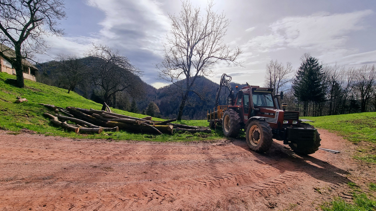 Sem pa letos dodal vitel z karo dvigam težje hlode. Veliko pomaga. |